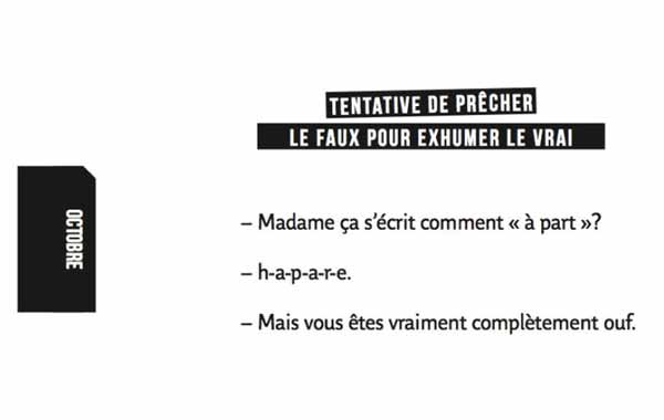 C'est comme le type qui fait les brèves de comptoir : pour 3 brèves réellement entendues, il y en a 7 qui sont inventées/recopiées/pillées pour arriver à remplir un livre.