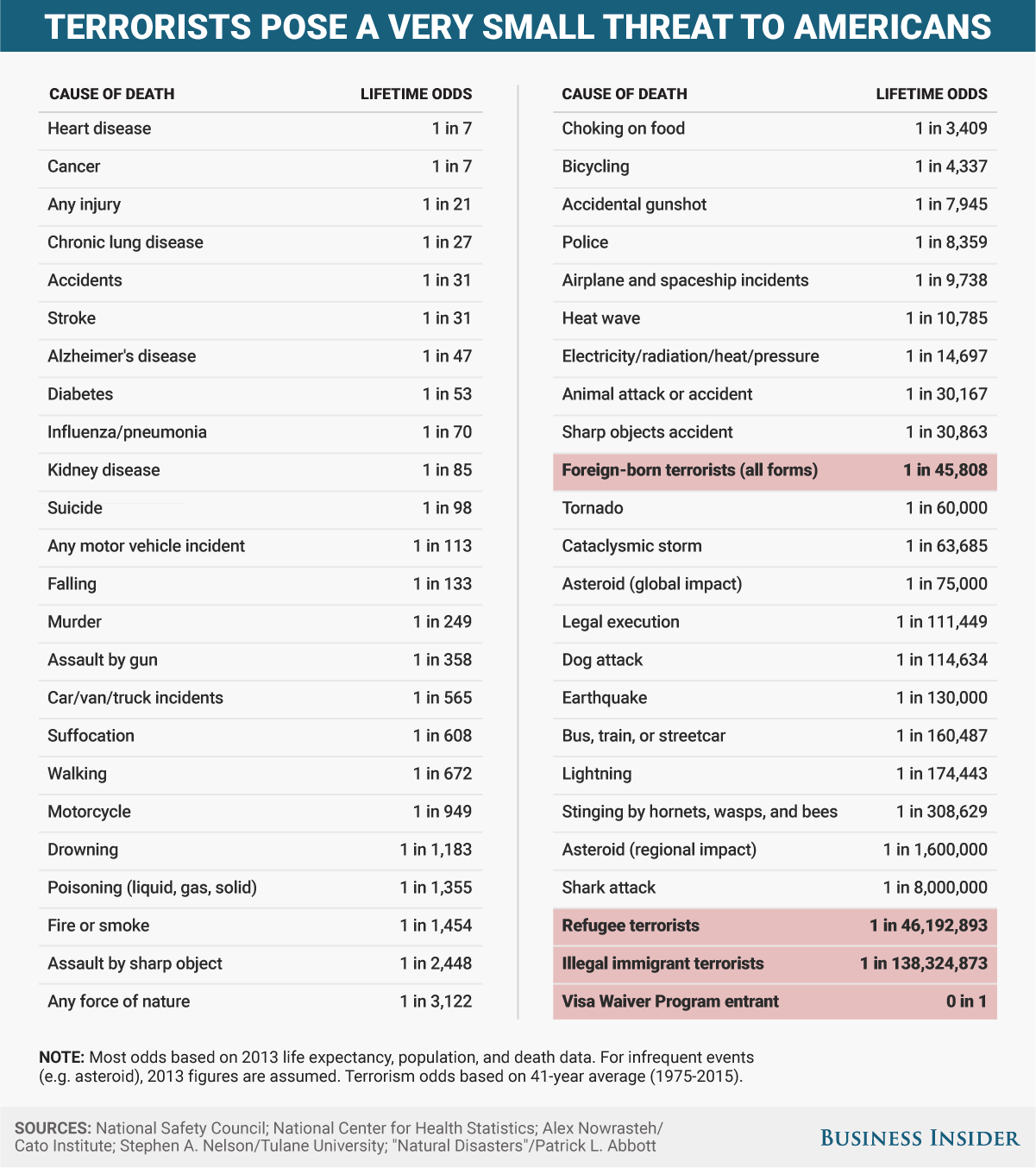 T'as techniquement 352 fois plus de chances de mourrir en t'étouffant avec ta bouffe que dans un parc d'attraction, 7 fois plus de chances de mourrir par la foudre, et 3.5 fois plus de chances de mourrir par une piqure de guêpe.