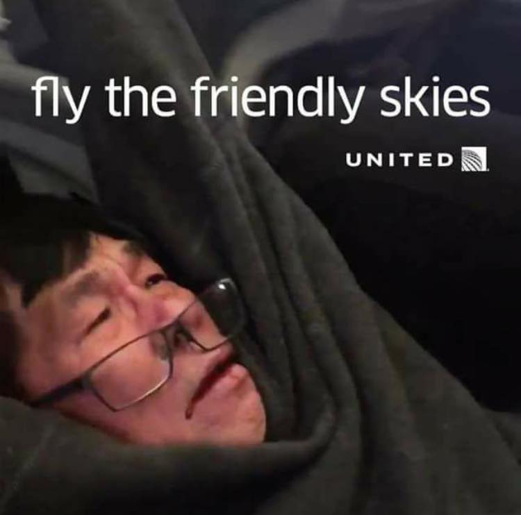 Conclusion de l'histoire : United Airlines a blessé au sang un passager qui avait acheté tout a fait légalement un billet parce qu'elle s'est ravisée après l'avoir laissé entré dans l'avion... ça va être très dur à défendre.