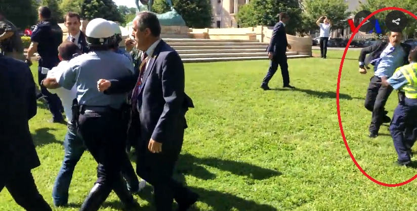 @TomBomb pour faire simple, si un flic matraque un mec de la secu d'erdogan (qui sont probablement accrédités comme faisant parti du corps diplomatique), c'est l'incident diplomatique directe, donc ils préfèrent s'en prendre aux manifestants, c'est plus simple et moins "risqué" d'un point de vue relationnel...