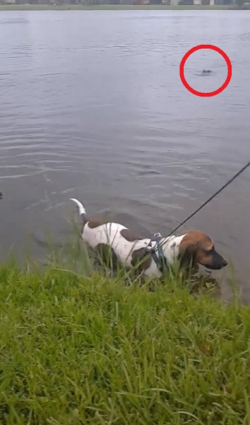 "s'est alors empressé de tirer sur la laisse pour sortir son chien de l'eau."