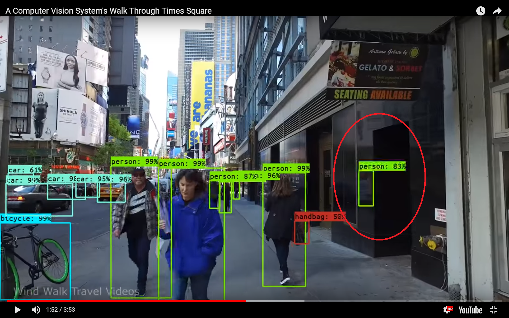 @kaporalhart C'est pas tout à fait vrai. Ce qui est vrai, c'est que les algorithmes n'ont pas de vue d'ensemble. Par exemple, si tu prends une image toute blanche avec un cercle noir, pour qu'un algo trouve le cercle il faut qu'il parcourt toute l'image en cherchant un cercle. C'est tout l'enjeu des algos de vision, parce que nous notre vision est très forte pour avoir très vite des vues d'ensemble et repérer des formes, alors qu'un algo ne voit que du détail. Donc nous, être humains, on n'a pas trop d'idée pour faire autrement que "Ben... Tu la vois la forme, elle est là". Pourtant il faut trouver autre chose ! La réelle difficulté pour détecter des objets dans une image, c'est donc surtout la performance. Là en réalité, la performance, c'est que ça détecte en temps réel !