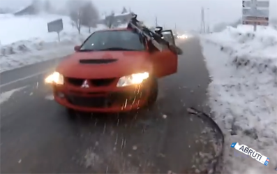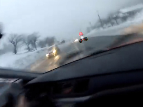 vidéo route montagne neige crash voiture ligne blanche passager glissade