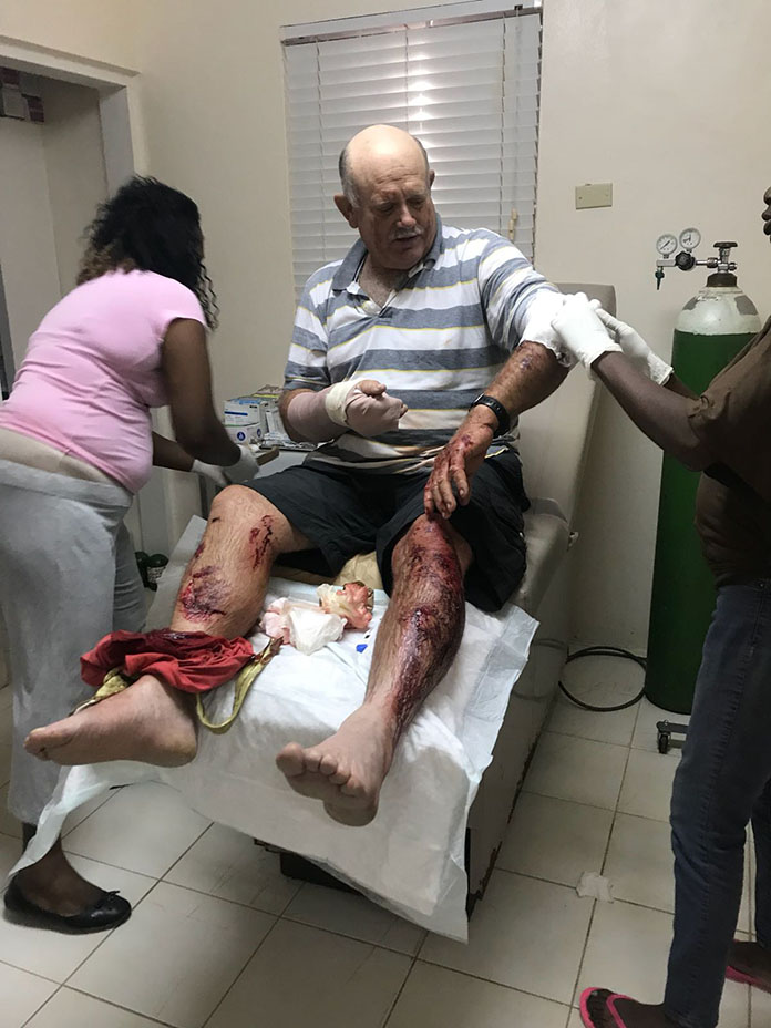 Aux Bahamas, un homme marchant sur des rochers au bord d'une route est balayé par une grosse vague. Il a été transporté à l'hôpital avec un bras cassé.