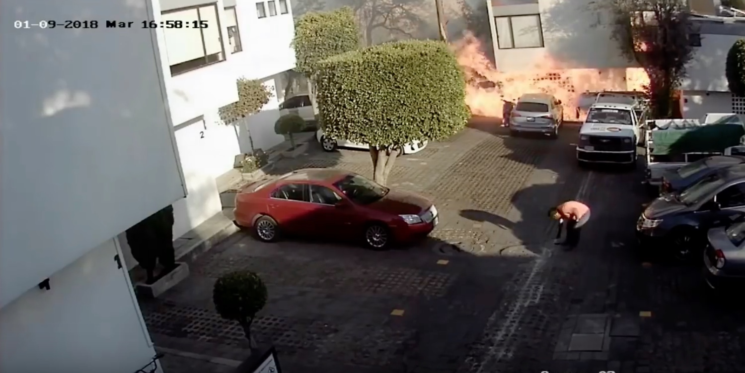 Franchement, vu le reflexe d'aller se proteger dans la voiture juste avant l'explosion, je me dis que ce n'est pas la première fois qu'il a ce genre de problème.
