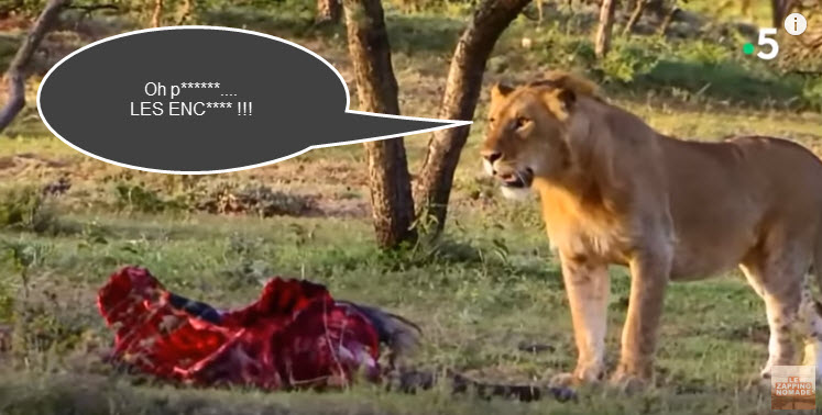 Ils ont envoyé un email, d'ailleurs c'est pour ça que les lions sont pas surpris de les voir et qu'ils les laissent faire. Mais je suis pas certain que s'ils avaient précisé qu'ils se prenaient la part du lion, ils auraient accepté si facilement. A voir la tête de la lionne qui cache son repas après leur départ, je dirais qu'elle s'est faite avoir !