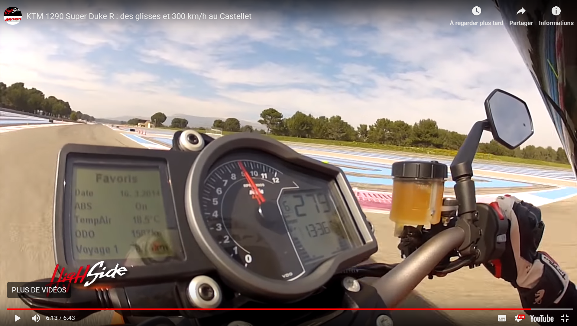 @billy_boolean pour avoir eu une 1290 V1 le même modèle que sur la vidéo, je peux te dire qu'il faut pas une ligne droite extrêmement longue pour atteindre les 300, Paul Ricard a une ligne droite de 1,8 km donc sur l'autoroute c'est largement faisable. il a déjà gagné pas mal de vitesse en stabilisant entre 180 km/h 200 km/h en 4ème, et quand la voiture le double il accélère à fond passe la 5ème il doit être à 250 et pousse jusqu'à au moins 280 km/h en 6ème.