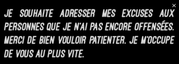 @Format_c Depuis quand s'excuser ça veut dire quoique ce soit hors accident ?? Désolé d'avoir volontairement choisi de me mettre dans une situation ou je dois m'excuser... PARADOXE.