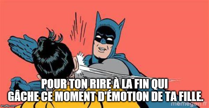 @ Nebinaf De même, quel message le père passe à sa fille en riant d'une mort ? Parce que je pense pas qu'elle discerne qu'il rigole de sa réaction à elle uniquement et pas de la mort. @ Koreame l'a bien exprimé
