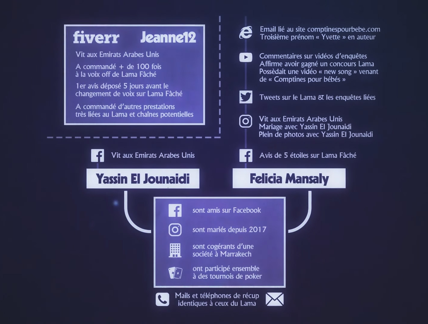 Avec tous ça, moi qui ne connaissait pas la chaine du Lama Faché, qui m'en battait les steak, ils auront réussi à me faire : - matter les deux enquêtes sur le Lama faché, - connaître cette chaine de merde - presque trouver de l’intérêt à dénicher l'identité d'un mec ou d'un couple dont tout le monde se fout - avoir de la sympathie des chaines aude WTFake, puis Sylvqin, puis Lama faché - culpabiliser de me sentir manipuler par tous - aller me chercher un kebab de rage de me sentir con