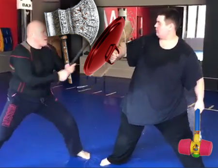 mais on peut m'expliquer en quoi encaisser des coups de hache avec un bouclier du parc asterix est sensé te faire maigrir? du tapis de course ou de la natation ne serait pas plus efficace?