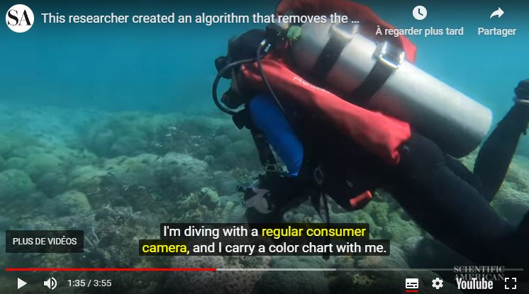C'est sympa, mais alors le speech habituel "blablabla intelligence artificielle" alors qu'elle explique clairement, plus tard dans la vidéo, qu'elle utilise des formules mathématiques (qu'elle a écrit) et sa petite palette de couleurs pour effectuer la correction... elle est où l'intelligence artificielle, là ? Puis le speech sur "ça pourrait aider les scientifiques qui veulent comprendre le réchauffement climatique"... oui, c'est vrai. Tout comme des chaussettes anti-odeurs ou des slips anti transpirants. Oui, OK, c'est sympa, ça permet de faire des photos sous l'eau plus jolies. Pas besoin de me prendre pour un idiot pendant 3 minutes de vidéo pour me montrer ça.