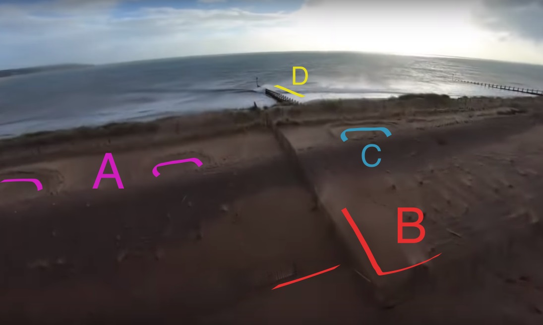 PS : oui, j'ai vu que la marée était plus haute dans la vidéo que sur l'image satellite. Mais j'ai pris comme référence fixe l'espèce de jetée/ponton et la ligne de marée maximale (transition entre le sable clair et foncé) visible sur la vue satellite.