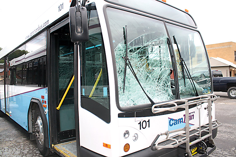 Ah ben c'est la première fois que je vois un Nova Bus avec un par-brise fait en 2 morceaux, sinon il en aurait reçu bien plus dans le visage des éclats de verres!