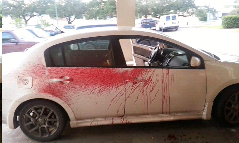 je pense qu'il s'est protégé la main avec un chiffon, il est arrivé quelque chose de similaire a mon père, (pas aussi con hein heureusement... une machine a lavé qui a rippé et au lieu de se la prendre sur le pied il l'a rattrapé avec la main, mais le coin s'est planté dans la main) malgré le chiffon pour faire compresse et la main resté a l'extérieur de la voiture, il a repeins le coté de la camionette...