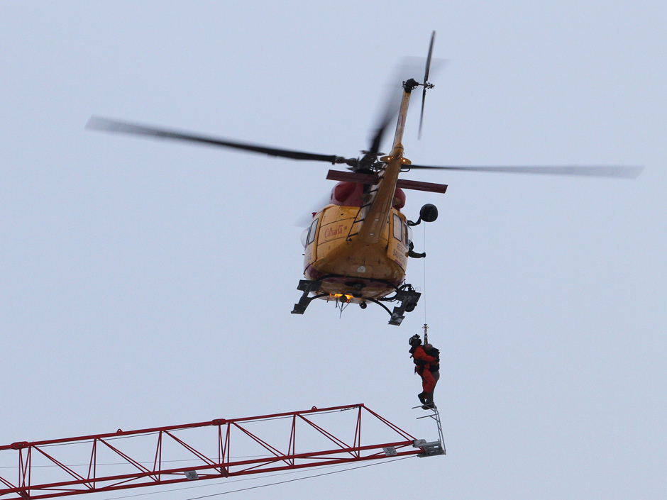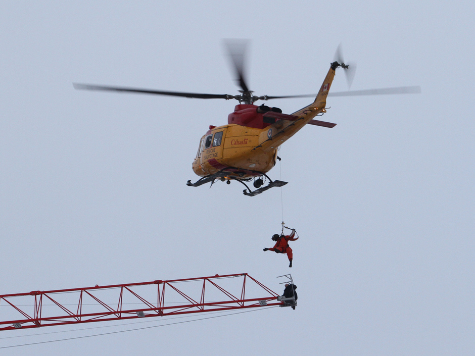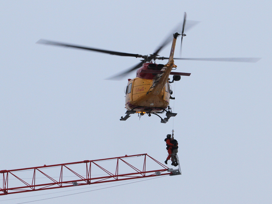 Pour celui qui se pose la question du pourquoi un délais de 1h. Au Canada, généralement, les seuls sauvetage héliporté se fait par l'armée (cas présent) ou par la Garde Côtière et quelques fois par une section spéciale de la police provinciale. Deuxièmement, des sauvetages par hélicoptère sa se fait très rarement au Canada. Nous n'avons pas d'hélicoptère SAMU comme chez vous.
