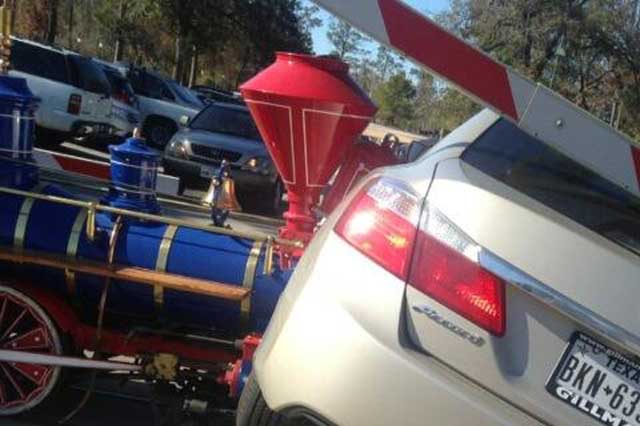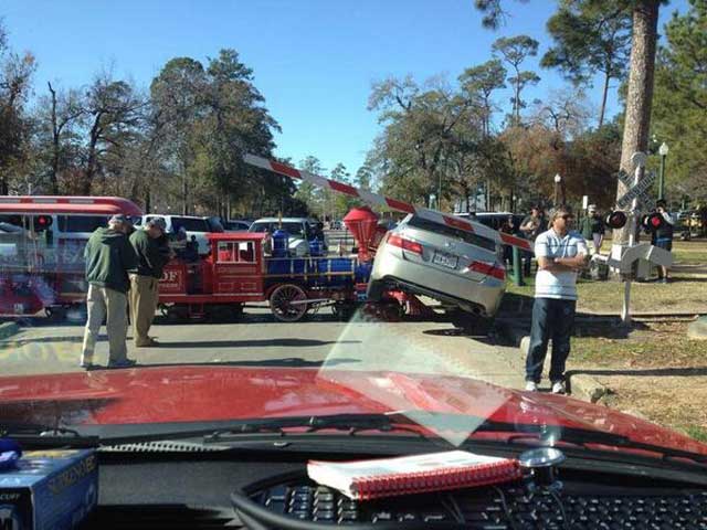 Bon là il se trouve que c'est que de la tôle alors c'est marrant, le petit train a percuté la TGV (très grosse voiture).