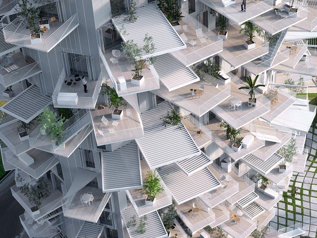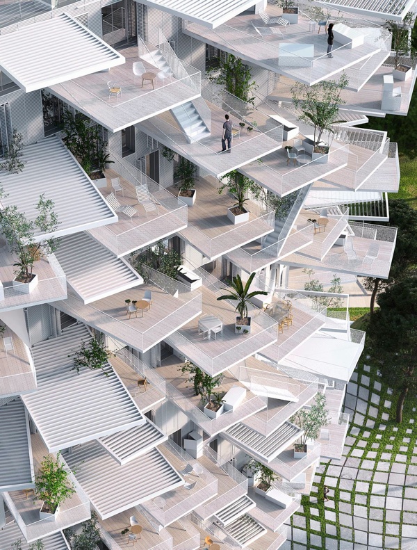 *qui* abritera  Ca fait un peu ruche quand même XD Mais sympa les immenses balcons quand on va aux derniers étages. Au choix, bronzette ou sieste à l'ombre sous la brise d'été  EDIT: quoi qu'en fait c'est pas mal réparti et y'a pas trop d'ombres.