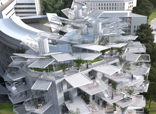 ça part un peu en live sur le haut, mais c'est effectivement (très) original.... Quoiqu'il en soit j'aurai préféré un immeuble un peu moins foufou mais genre immeuble passif ou plus respectueux de l'environnement, parce-que là niveau béton y'a la dose!:4: