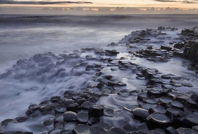 Citation : Dans le nord de l’Irlande, la "chaussée des géants" est un étrange paysage de plus de 40 000 colonnes de roches volcaniques à la forme parfaitement hexagonale, que l'on croirait artificiel. Les colonnes se sont formées à partir d'une coulée de lave basaltique par l'action de l'érosion marine. Ce lieu doit son nom à la légende qui lui est attribuée : un géant irlandais voulait se battre contre un géant écossais et donc constitua ce passage entre les 2 pays. Ce site est inscrit au patrimoine mondial de l’Unesco depuis 1986. http://secouchermoinsbete.fr/41298-la-chaussee-des-geants-en-irlande-porte-bien-son-nom