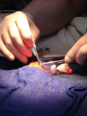 @lafeedesbois ==> un poisson anesthésié peut tenir qq minutes à l'air libre et au vu des images la chir n'a ps pris plus de 4-5 min tout compris(un coup de bistouri et 1-2 point sutures)