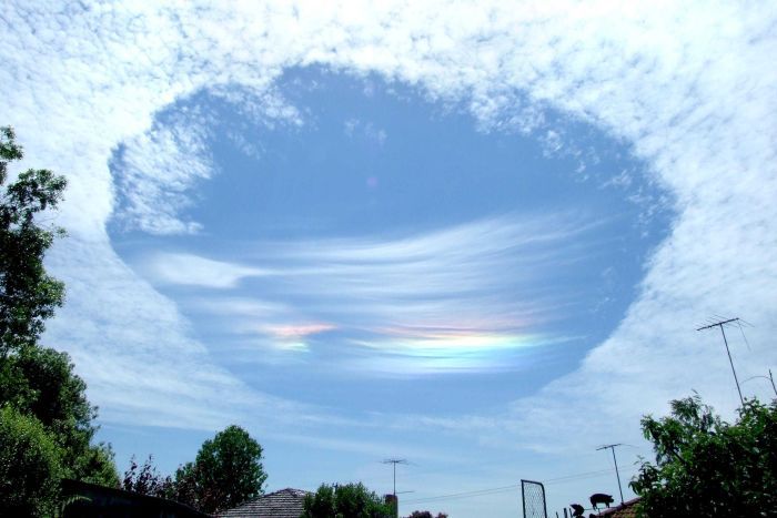 Pas un expert, mais ça s'explique assez aisément: Une (forte) chute de température locale dans les airs entraîne le gel des goutelettes d'eau constituant les strato-cirrus (ça s'écrit comme ça? :gratte: ), qui, devenant pour le coup beaucoup plus denses que l'air environnant, chutent. Se forme alors un trou dans la calotte nuageuse, tandis que plus bas, les goutelettes rencontrent des températures plus douces, et, probablement, des conditions encore favorables à la formation de nuages, et se décondensent. (Et, oui, je suis bien moins synthétique que le comm' de la vidéo).