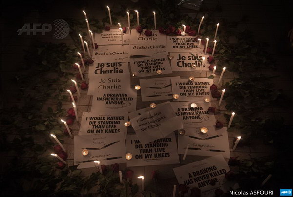 Tuer kkun qui a oser parler c'est de la dictature (par la peur, la violence osef) ça ne doit pas et ne devra jamais passer. j'ai jamais été fan de Charlie hebdo, mais ils me faisaient sourire quelque fois dans certaines caricatures qui me "parlaient:-) Hier j'ai été consternée, limite a en pleurer d'une telle bétise (de l'acte) et aujourd'hui cela me renforce encore plus a apprendre a mes enfants a ne pas se laisser embrigader par des marchants de peur afin qu'ils marchent droit dans leur bottes pour ne pas ceder face a de tels connards ps: je revois encore dans ma t^te la videos de ce pauvre gars a terre qui supplies le mecs par "ok chef" pour le calmer afin qu'il ne se defoule pas... et l'autre qui lui colle un tir en pleine tête, là comme ça ... aucune ideologie presente, que de la terreur, de la froideur. Jamais je ne me tairais face a cela.