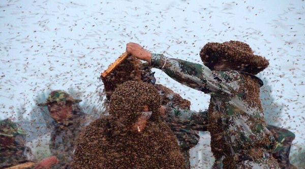Il s'est levé un matin et s'est dis: "Tiens si je me mettais plus de 100kg d'abeilles sur le corps!" ????