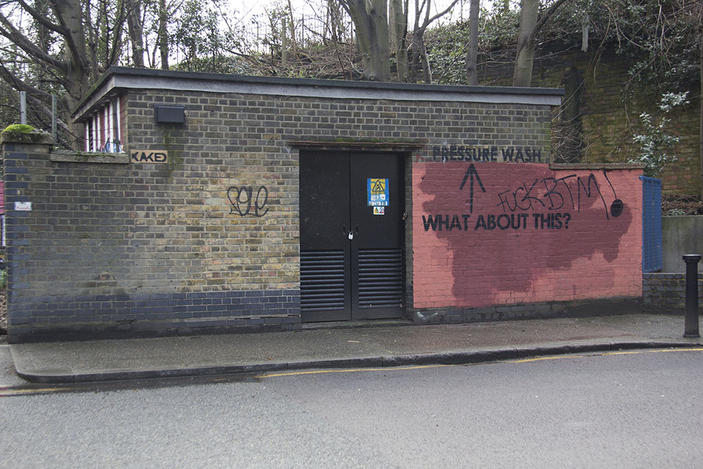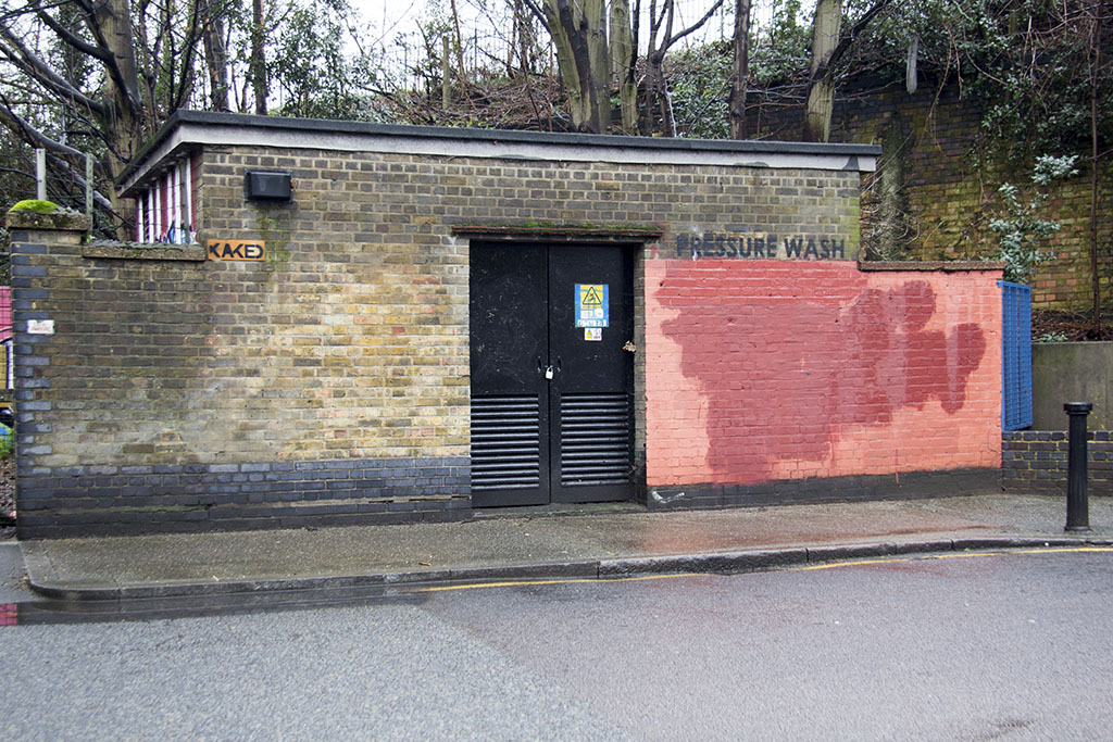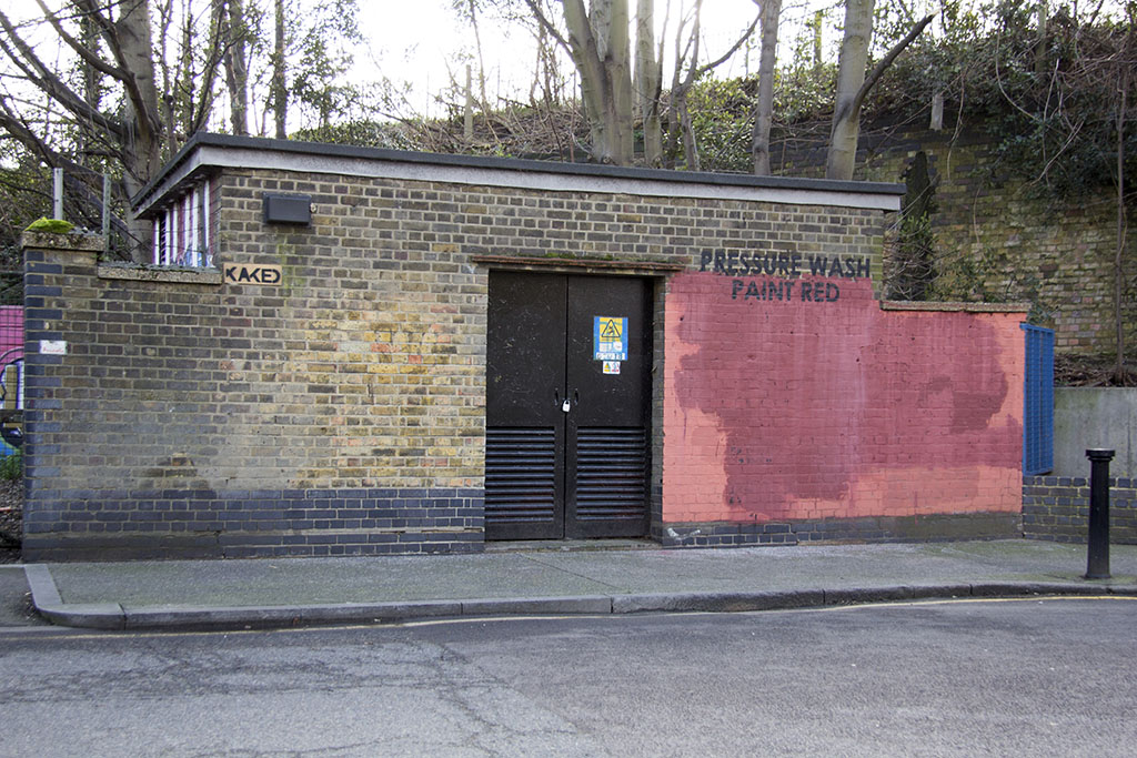 @alvein Peut-être parce qu'il s'agit d'un local technique, pas forcément visible et que du coup tout le monde se fout de son aspect extérieur. Si on regarde la première photo, on voit que la partie gauche a déjà été nettoyée à haute pression, le rouge à droite a surement déjà servi a couvrir des tags....