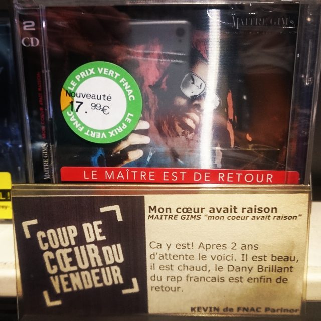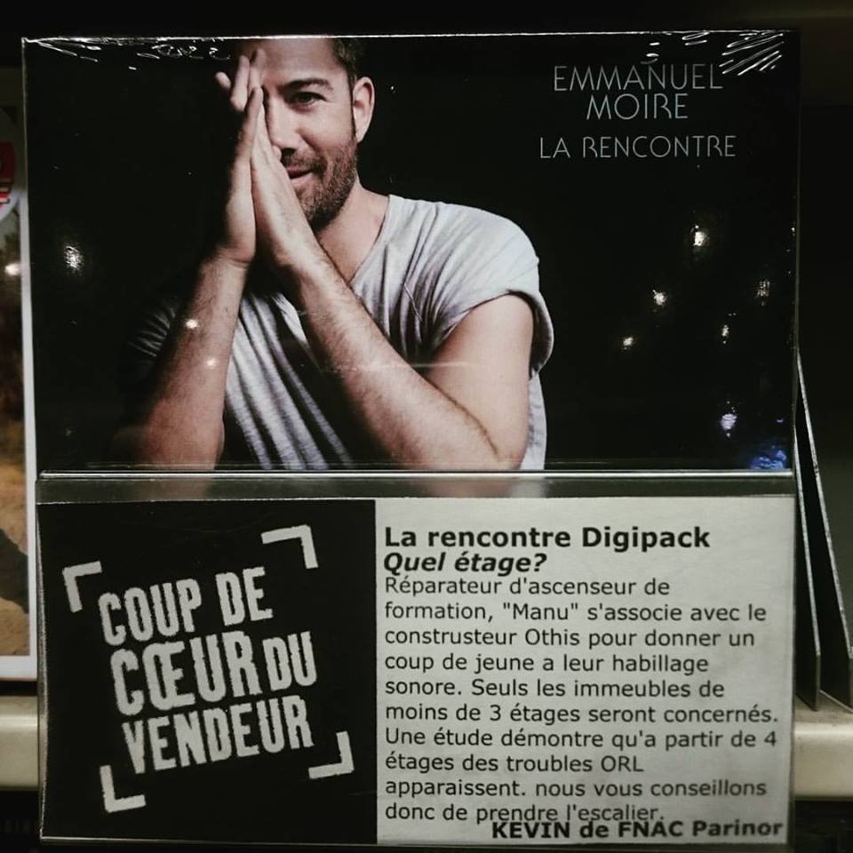c'est très drole. et c'est cool que des vendeurs puissent avoir ce genre d'initiatives. Par contre je suis toujours étonné du prix de certains disques ... 17,99 euro la nouveauté. Faut pas s'étonner que tout ce marché s'effondre encore ... J'ai bossé presque 10 ans chez Virgin, et j'ai toujours trouvé abusé le prix des disques. Je vois que ça n'a pas changé. Bravo.