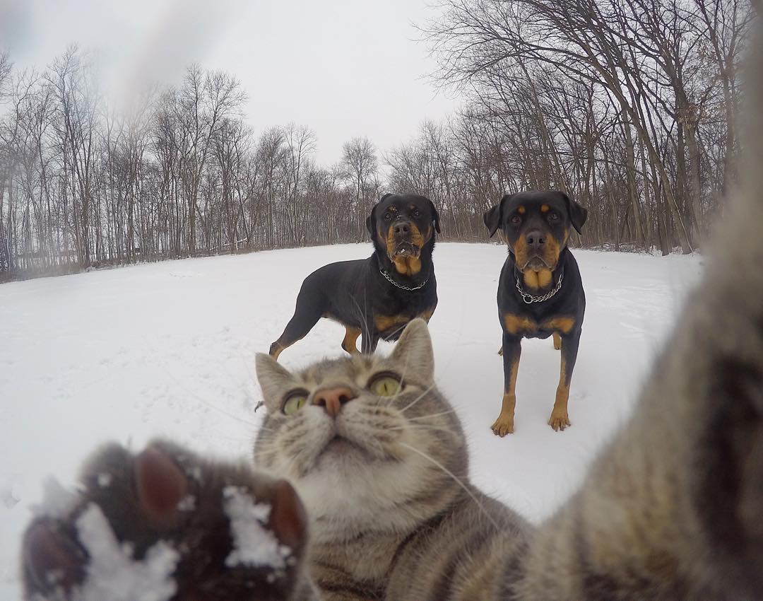 Ne surtout pas montrer ces photos à PETA, ils vont faire un procès pour que le copyright soit donné au chat et que PETA soit nommé le gérant du compte, au nom du chat bien entendu. (non, je n'ai pas bu.) http://www.20minutes.fr/insolite/1693267-20150923-etats-unis-peta-depose-plainte-nom-singe-prenait-selfies-proprietaireSinon, vous avez remarqué que nous avons enfin la preuve de l'existence de Big Foot! Regardez les traces dans la neige!!!