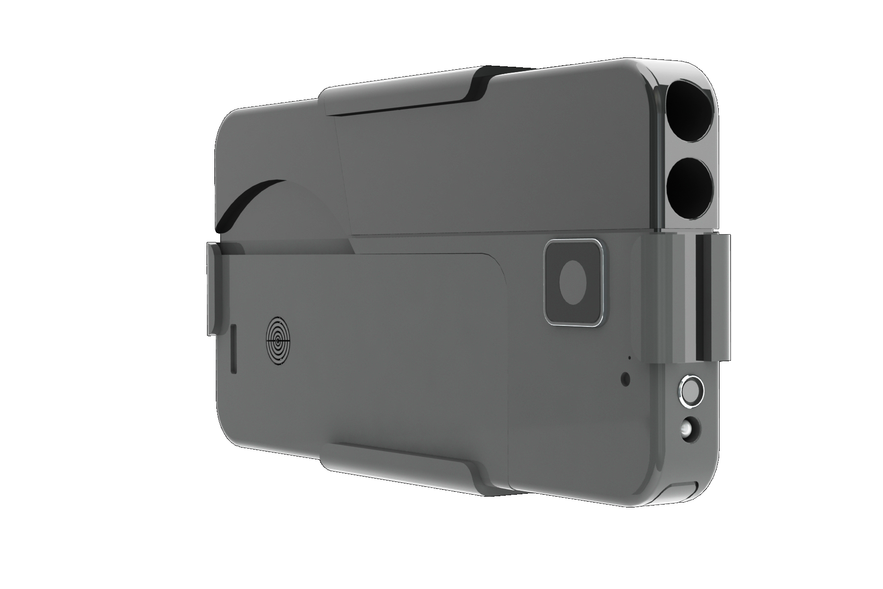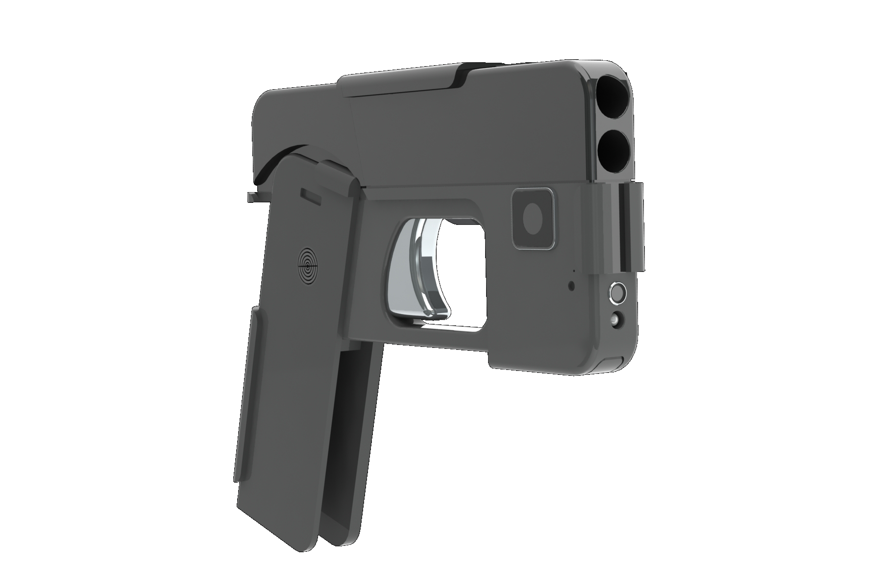 Cette arme, à double canon de diamètre .380, peut également comme un téléphone portable, être accrochée à la ceinture par le biais d'un clip afin d’être utilisé rapidement en cas de self-defense. Il n’est pas possible de tirer quand le pistolet est en position repliée
