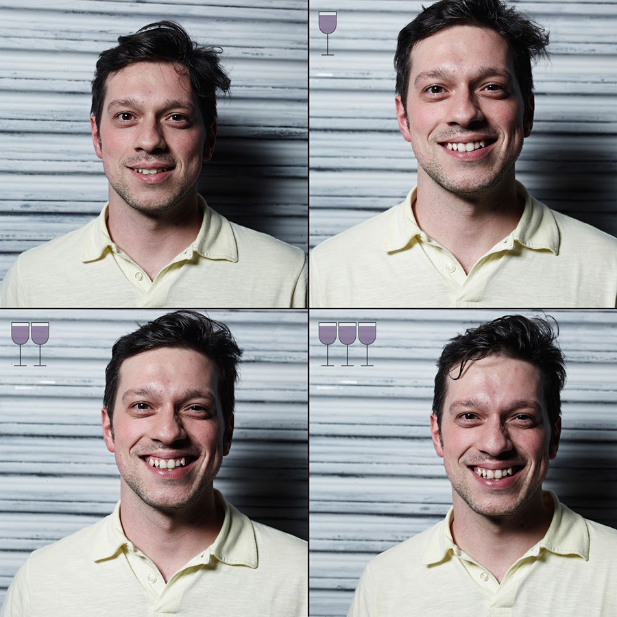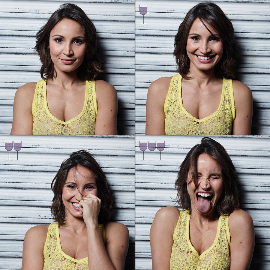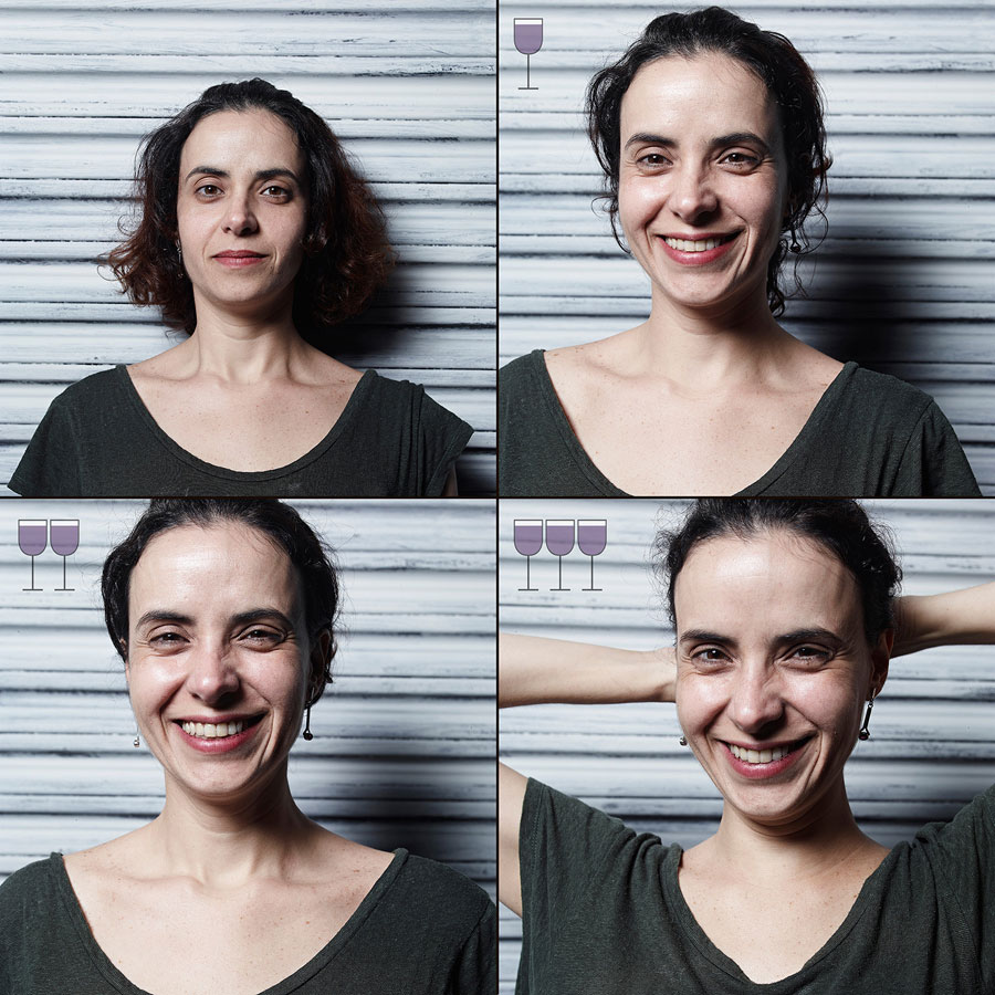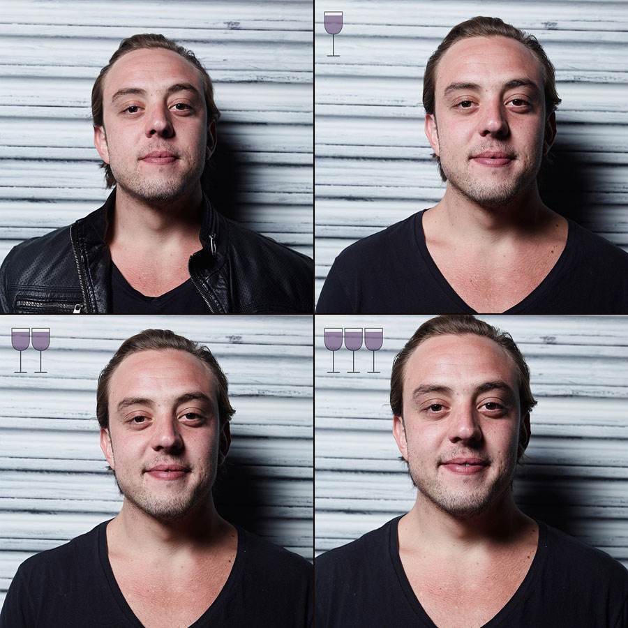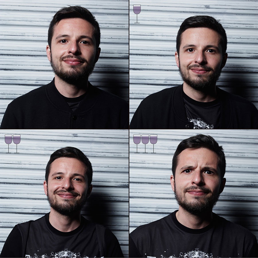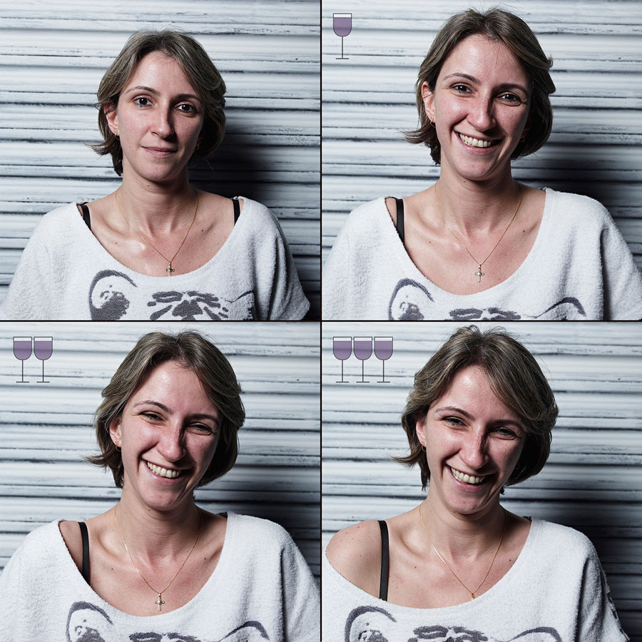 Merci touche "Fin"  Sinon perso je vois pas tant de différence que ça, on aurait tout aussi bien pu ne pas dire qu'ils ont bu et on aurait vu 4 photos où la personne prend 4 poses différentes et encore certaines entre 0 verres et 3 verres sont quasi similaire, bref rien de ouf...