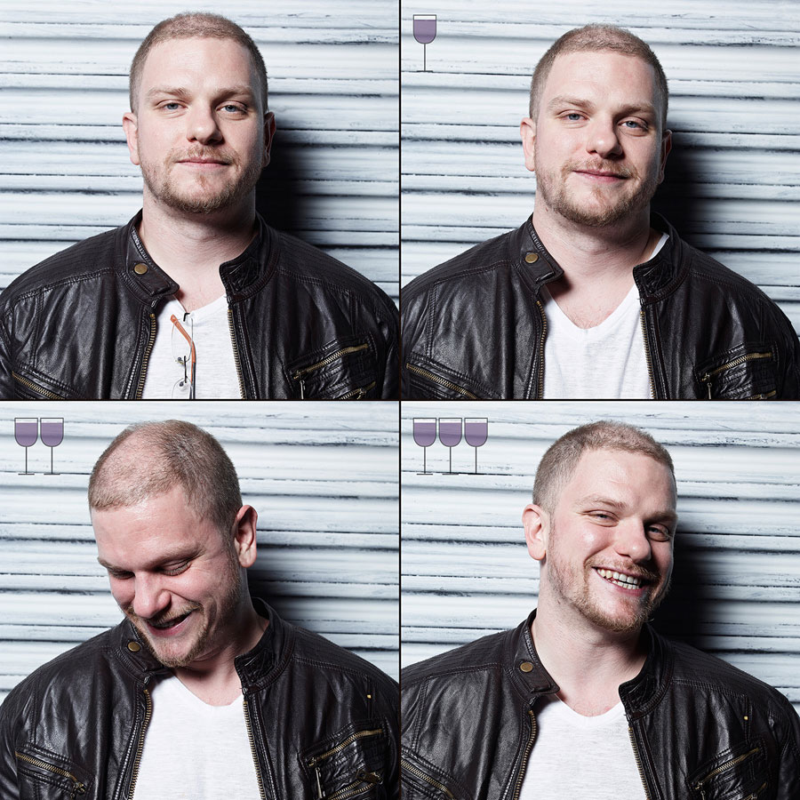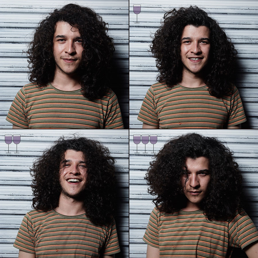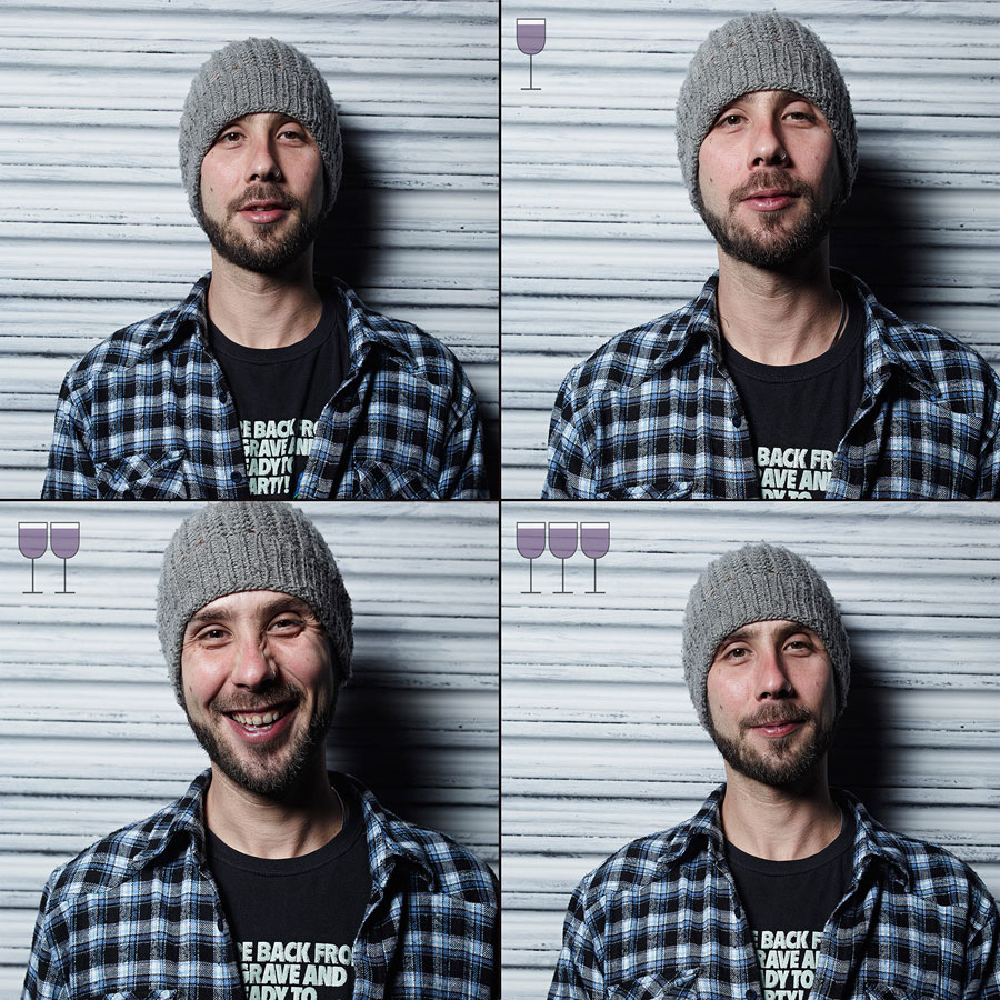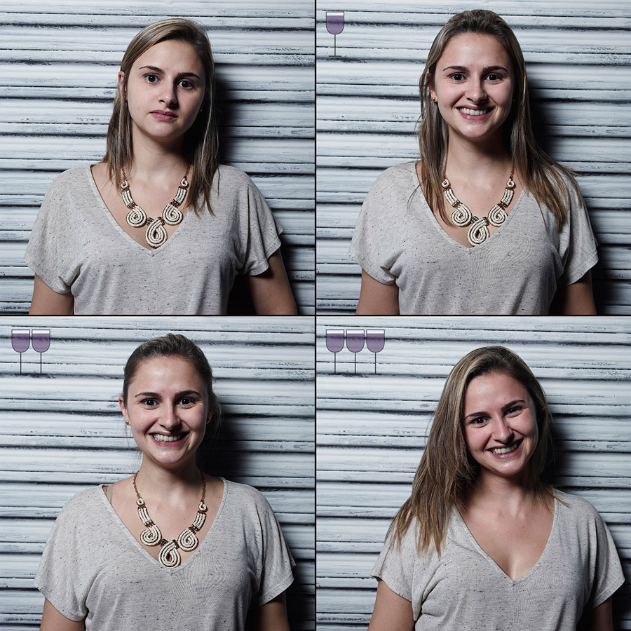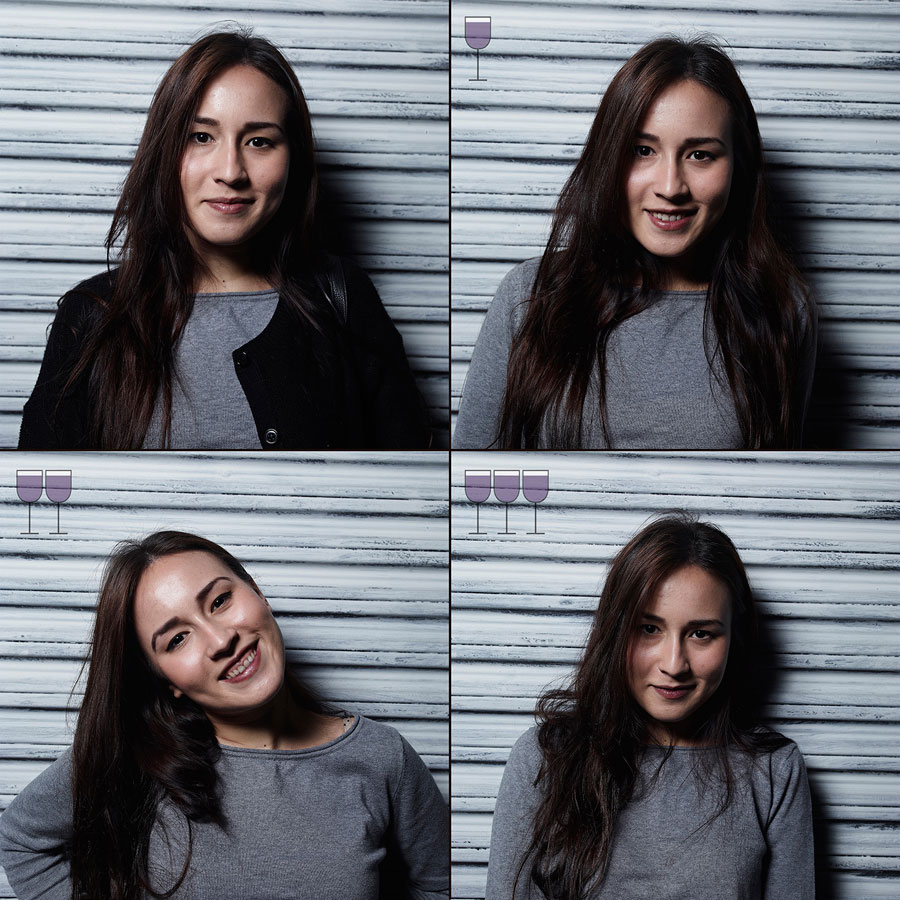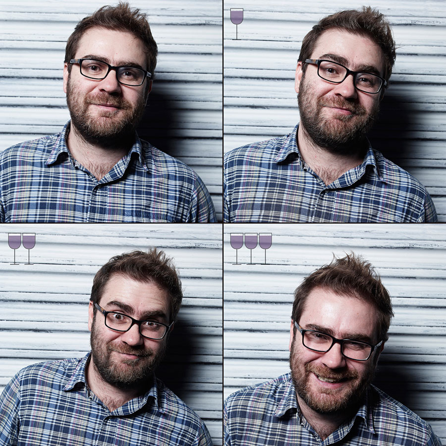 Merci touche "Fin"  Sinon perso je vois pas tant de différence que ça, on aurait tout aussi bien pu ne pas dire qu'ils ont bu et on aurait vu 4 photos où la personne prend 4 poses différentes et encore certaines entre 0 verres et 3 verres sont quasi similaire, bref rien de ouf...