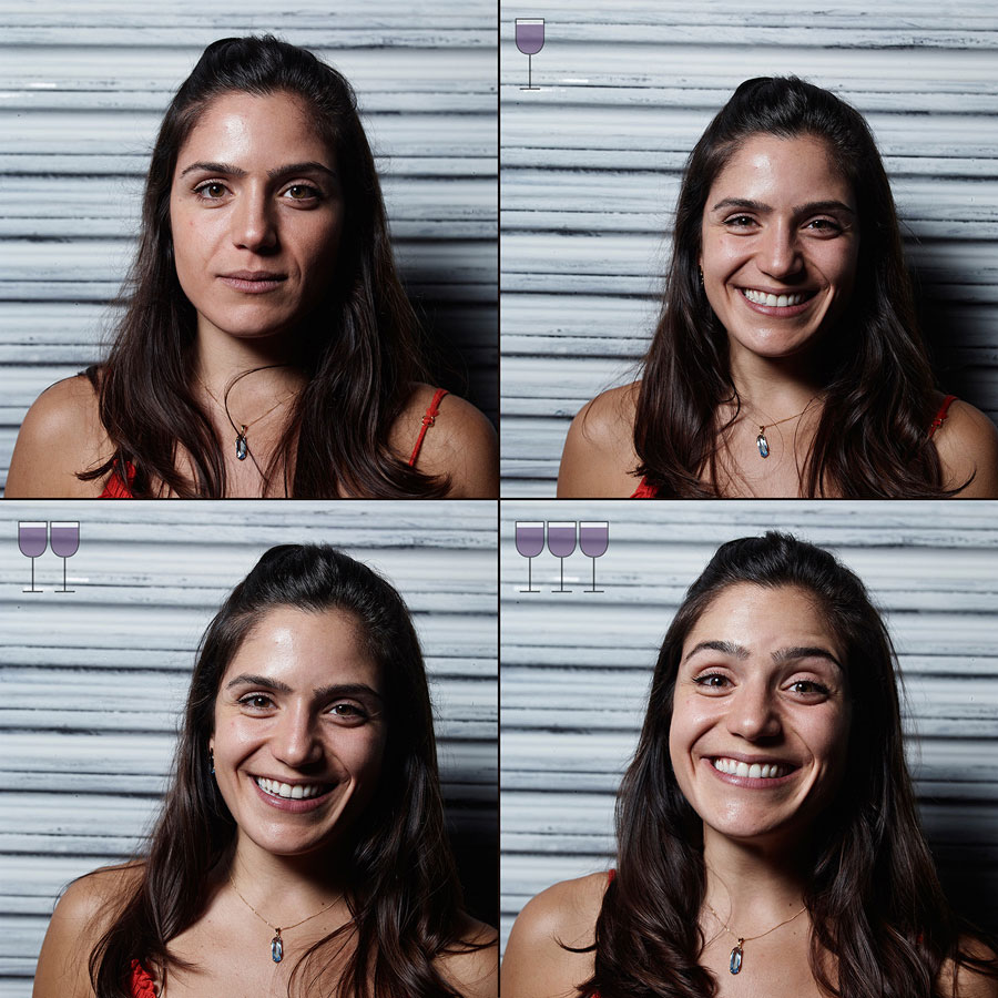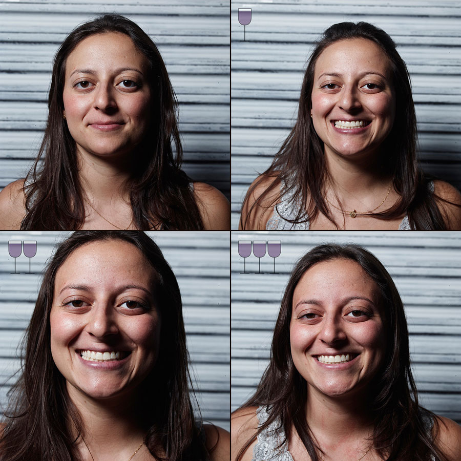 Je ne vois pas et ne comprends pas l'intérêt. La plupart sont plus souriants au bout de quelques verres, certes, mais j'ai envie de de dire "et alors ? Qu'est-ce que ça prouve ? Qu'il faut boire pour être heureux ? Que l'alcool rend les gens souriants ? Et si le photographe avait pris la peine de prendre des "sujets" dépressifs, ça aurait donné quoi ?