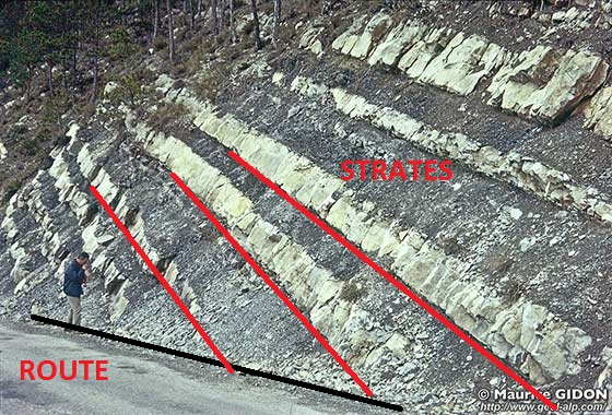 - Tu te contredit, tu m'a dit toi même que l'angle entre la route et les strates est de 33° voir plus, et là maintenant tu me dit "c'est pas un pendage de 15° qui va faire illusion d'optique". Et bah moi je te dit que entre une pente à 30° = 55% (bien pentue mais qui se fait même en voiture de série) et une pente de 30° + 33° = 66° = 175% (impossible à franchir sans élan meme avec le meilleur 4x4 du monde) il y a quand même une bonne grosse différence ! Le genre de différence qui retourne ta bagnole et la fait rouler en bas de la pente !