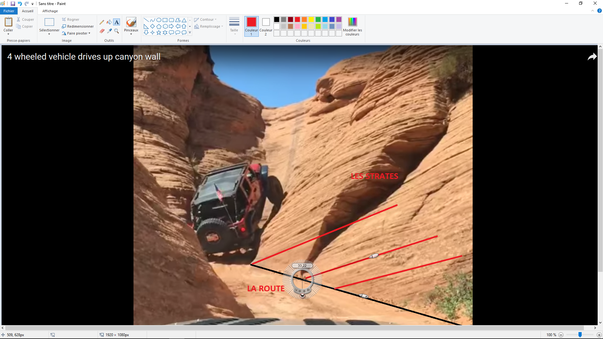 @Crubier Déjà dans ton premier message ta photo n'est absolument pas similaire à ce qui est dans la vidéo donc ta comparaison est non recevable. Et dans ton deuxième message tu dit que les strates sont clairement en pente "C'EST UN FAIT"! non sérieux ? un fait c'est quelque chose de reconnu certain et incontestable, t'es allé sur le terrain derrière le jeep mesurer le pendage ? non je crois pas donc ne fait pas semblant de faire le scientifique sans être sûr de ce tu raconte. Et en plus si tu voulais vraiment être certain tu aurais pu aller voir sur google ce qu'est le grand canyon et qu'il est caractérisé par une stratigraphie horizontale mais tu as préféré te référer à tes fameux chiffres plutôt qu'a ton raisonnement.... Donc oui tu ne sais pas de quoi tu parle en terme de géologie, sinon d'après ma mesure sur le devant de la jeep il y a un angle d'environ 33° et la mesure ce fait depuis un angle de vue fermé donc il est plus important en vrai (mais pas plus de 45 je te l'accorde), ensuite c'est juste l'angle entre la route et les strates mais pas celui entre la jeep et la paroi.... Ca: c'est différent de ça: