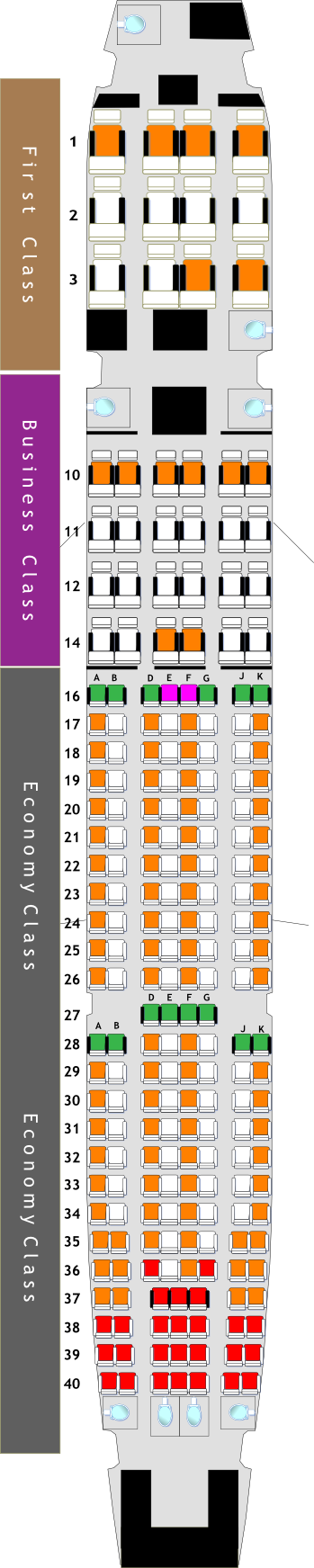@ 365wanda Et ben non, c'est pas une premiere classe au vus des fauteuils.. Voici une Buisness classe chez Quatar Airways...  Et je peux même dire qu'il sont au fond de l'appareil au vu des 4 rangé de 3 fauteuils au premier plan.. Voici le plan d'un A330 de chez Quatar...  De plus on peux voir 8 Faucons par rangée donc d’après mon calcul savant, le prince à acheté 40 places au final... (10 rangées de 4 fauteuils) Voilou..