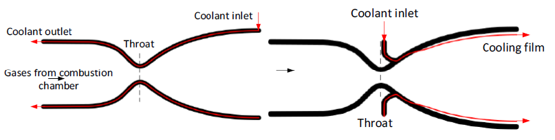 Sinon, en quelques mots : La tuyère est là pour détendre les gaz, parce que ça les accélère et c'est ça qui donne à la fusée son efficacité. La meilleure pression de sortie est égale à celle de l'air ambiant. Seulement à mesure que la fusée monte, la pression atmosphérique va baisser, donc il faut trouver un compromis entre le sol et l'espace. C'est pour ça que beaucoup de fusée ont une tuyère qui détend trop les gaz au sol, mais qui marchera mieux là-haut, et c'est particulièrement vrai pour la navette qui garde le même moteur depuis le sol jusqu'en orbite.
