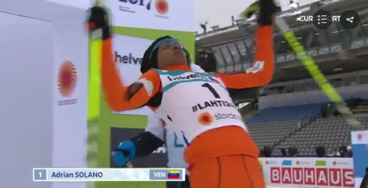 Hier, le skieur vénézuélien Adrian Solano a eu quelques difficultés pendant une épreuve des championnats du monde de ski nordique 2017 à Lahti, en Finlande. Ce même skieur a également eu quelques problèmes avec la police française pour se rendre en Finlande.