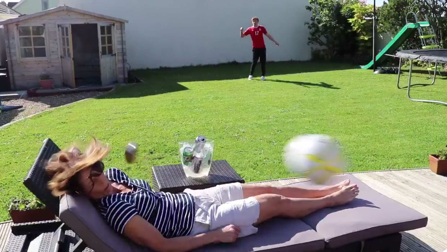 On voit sur le léger mouvement de la tête que la mère s'attendait à recevoir un coup de ballon en pleine poire. Donc moi je dis maman légèrement maso sachant même pas tenir une canette à une main.