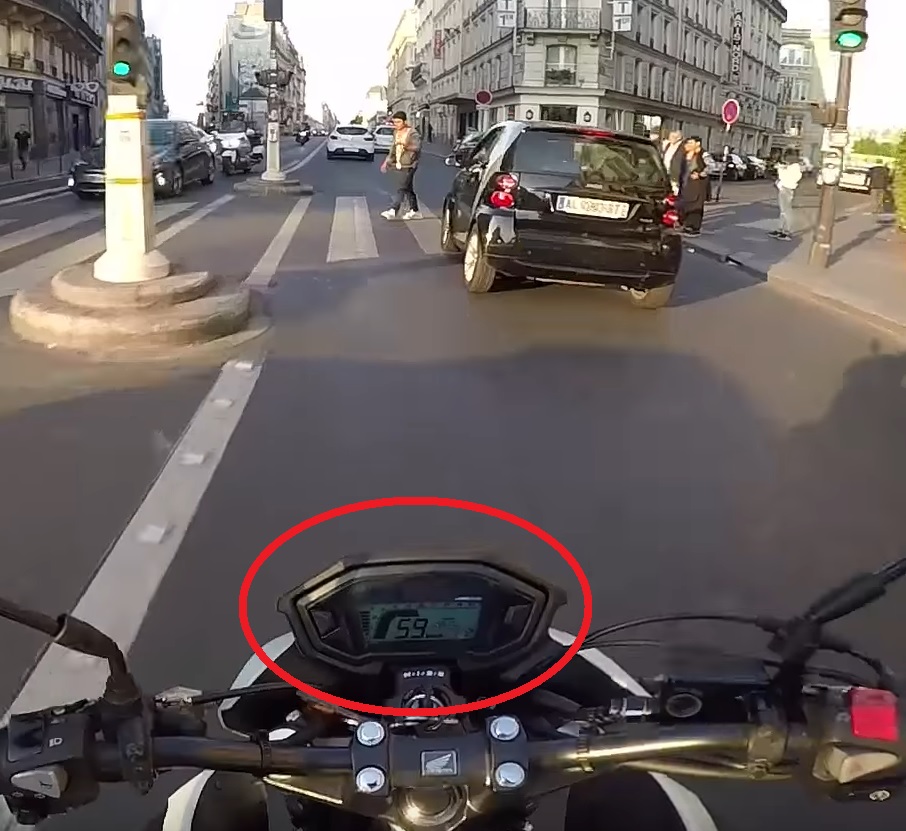 Au début j'ai cru que c'était à l'étranger et que du coup le conteur était en mph, puis j'ai vu que c'était en France, donc que le mec roule a 60km/h en pleine ville.
