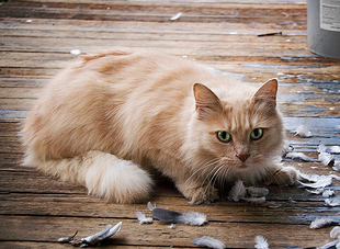 Le chat est un gourmet : il sait que les jeunes pigeons sont plus tendres que les adultes. (Avec des petits pois, c'est pas dégueux.