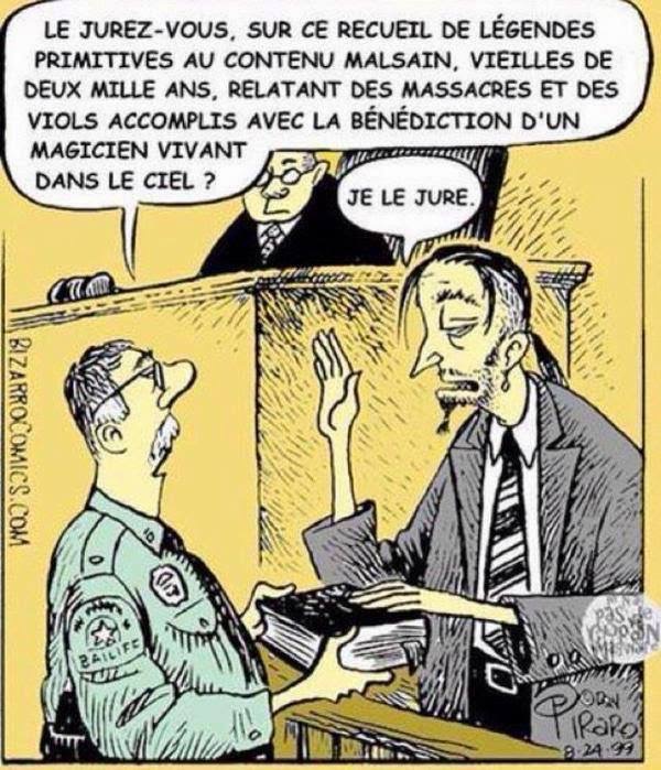 C'est amusant ça, moi j'ai toujours entendu parler des religions DU livre (on parlait de la Bible, il me semble), et ces religions ce sont les 3 religions qui sont pas foutues de s'entendre pour un territoire (Jérusalem), alors pour la terre entière, je vous raconte pas.