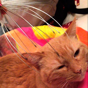 Les chats ont vraiment le chic pour se trouver des endroit douillé, bon lui n'avait certainement pas prévu qu'une pince pouvait venir lui chatouiller les moustaches.