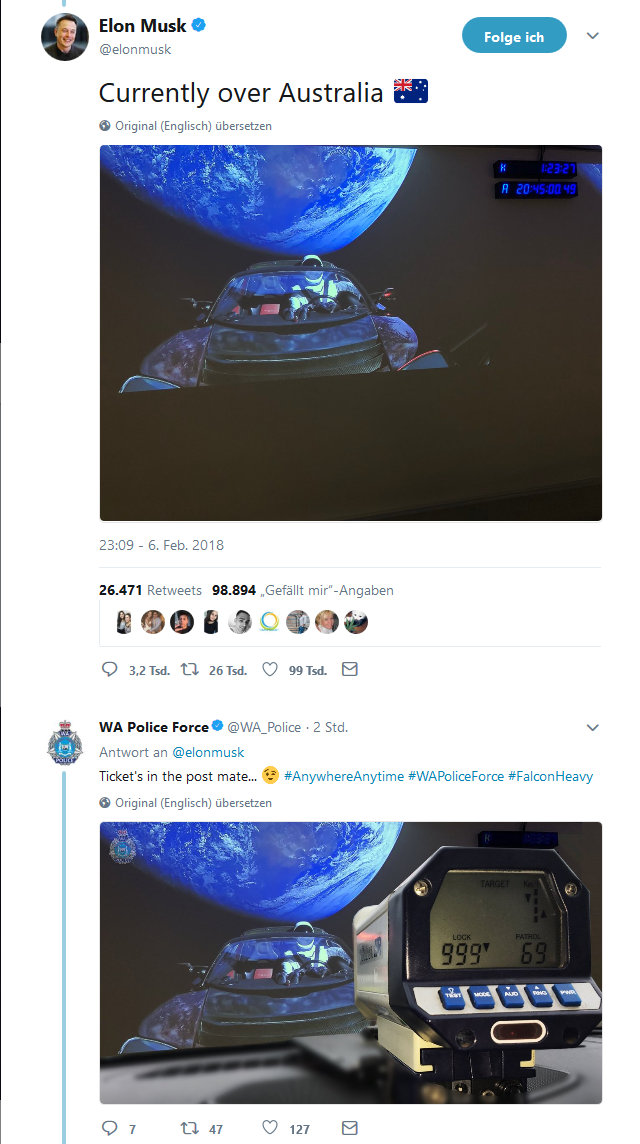J'imagine les mec coté marketing / pub des marques automobiles ce matin qui se demandent comment elles vont pourvoir rivaliser pour être aussi cool qu'une tesla dans le système solaire.