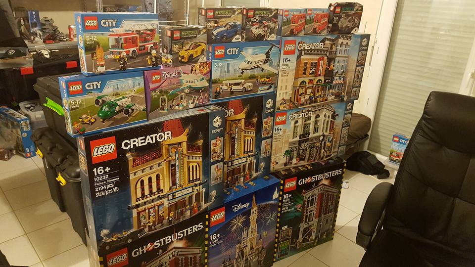 @ goeland57 Pas vraiment de photo de la totalité de la collection, qui est éparpillée un peu partout. Mais voici une commande de Décembre  Là t'en a pour 1500 €, et dans la caisse noire, à gauche, t'as plus de 100 kilos de vrac. Au fond, sur les étagères, les modèles assemblés, et sur le bureau (non visible), les créations persos (appelées MOCs dans le jargon. Les fans adultes de Lego sont appelés les AFOLs (les Adults Fans of Lego), j'ai d'ailleurs écrit la page Wikipédia du terme AFOL. On fait des expos, on papote sur des forums, on suit les nouveautés, c'est très sain, mais c'est cher ! Donc oui, j'ai une certaine fierté d'avoir une telle collection. Certains modèles valent une fortune, mais surtout, ça me fait plaisir des les construire. Le seul truc qui me manque, c'est la place ! Par contre vu le prix du mètre carré, c'est pas pour tout de suite.