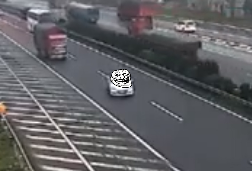il aurait mérité de se prendre ne serais-ce que le premier camion dans la tronche, histoire de lui remettre les idées en place, comment des gens comme ça peuvent encore avoir leur permis de conduire!?