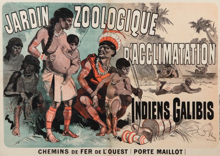 "Le 5 mai 1889, quelque quatre cents Africains et Asiatiques prennent possession du Champ-de-Mars. Ce n'est pas une manif de sans-papiers avant la lettre, ni une réunion de rappeurs, mais les habitants du village indigène de l'Exposition universelle dont l'ouverture officielle est pour le lendemain. Attraction phare de l'Exposition, ces Africains, Kanaks et Annamites ont l'immense honneur ( !) d'être les habitants du premier « village indigène » organisé dans le cadre d'une « exhibition ethnologique » lors de l'Exposition Universelle." (article du Point payant mais tu a quand même quelques photos http://www.lepoint.fr/c-est-arrive-aujourd-hui/5-mai-1889-demain-400-negres-kanaks-et-annamites-seront-les-stars-de-l-expo-universelle-05-05-2012-1458309_494.php ) Tu as eu ensuite des 'tournées' en France jusqu'à la seconde guerre mondiale. Tu peux chercher "zoo humain". Wiki a un début de réponse. https://fr.wikipedia.org/wiki/Zoo_humain