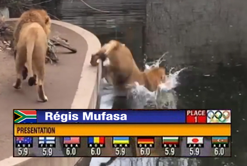 Re: Un lion maladroit tombe à l'eau dans un zoo